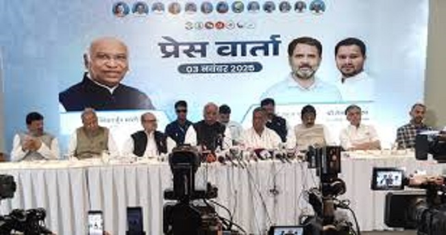 कांग्रेस अध्यक्ष ने राजग के घोषणापत्र को लेकर कटाक्ष करते हुए कहा, ”ये लोग घोषणापत्र जारी करने आए तो सिर्फ 36 सेकंड में प्रेस वार्ता ख.त्म कर दी. 20 साल से शासन में हैं दो मिनट तो रुक जाते.” खरगे ने कहा, ”दो दशकों से बिहार में भाजपा-जद(यू) की सरकार है और 11 वर्ष से मोदी जी केंद्र में हैं. आज अगर मुद्दों की बात करें तो बिहार के लोगों के लिए सबसे बड़ी समस्याएं, महंगाई, बेरोजग़ारी, बढ़ता पलायन और आर्थिक असमानता है.” उन्होंने महागठबंधन के चुनावी वादों का उल्लेख करते हुए कहा कि सरकार बनने पर इन पर पूरी तरह अमल किया जाएगा.