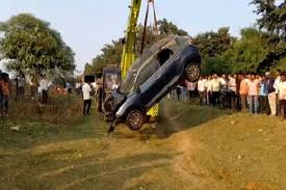 कार को क्रेन से बाहर निकाला गया