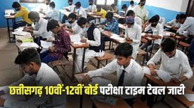 छत्तीसगढ़ 12वीं बोर्ड परीक्षा का टाइम टेबल