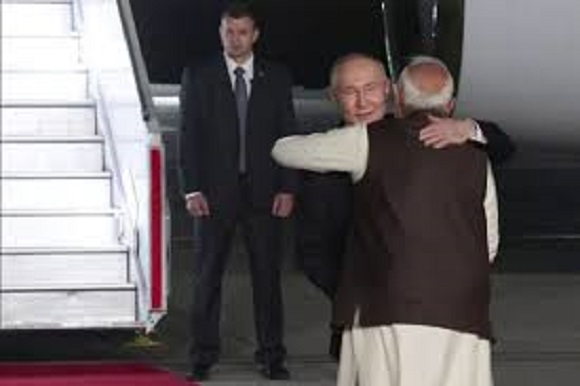 नई दिल्ली – रूसी राष्ट्रपति पुतिन के भारत पहुंचने के बाद प्रधानमंत्री नरेंद्र मोदी ने पालम एयरपोर्ट पर गर्मजोशी से स्वागत किया. पीएम मोदी ने पुतिन को गले लगाया. भारत ने पुतिन के स्वागत के लिए रेड कार्पेट बिछाया. प्रधानमंत्री नरेंद्र मोदी और रूस के राष्ट्रपति व्लादिमीर पुतिन दिल्ली के पालम टेक्निकल एयरपोर्ट से निकलते समय एक ही कार में नजर आए.