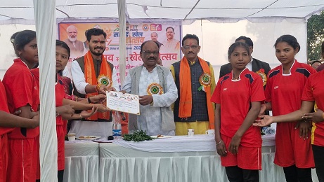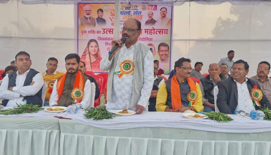 सांसद खेल कुद प्रतियोगिता के पुरस्कार वितरण में पहुंचे पूर्व संसदीय सचिव गोवर्धन मांझी एवं जिला पंचायत अध्यक्ष गौरीशंकर कश्यप