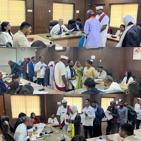 बेमेतरा – कलेक्टर रणबीर शर्मा की उपस्थिति में आज मंगलवार को समय-सीमा की बैठक के बाद कलेक्टरेट के दृष्टि सभा कक्ष में जनदर्शन आयोजित की गई। जिसमें जिले के अलग-अलग क्षेत्र के लोग अपनी-अपनी मांग, समस्याएं एवं शिकायतें लेकर आये। इस दौरान जनदर्शन में आने वाले सभी लोगों की समस्याओं का निराकरण भी किया गया। आज के जन चौपाल में कलेक्टर ने लोगों की समस्याओं को गौर से सुना और संबंधित अधिकारियों से दूरभाष पर और समक्ष बुलाकर संबंधित आवेदनों का त्वरित निराकरण करने के निर्देश दिए। कुछ आवेदन मौके पर ही निराकरण किए गए। आज जनदर्शन में विभिन्न शिकायत एवं समस्याओं से संबंधित 16 आवेदन प्राप्त हुए। तात्कालिक महत्व की समस्याओं का जहां त्वरित निराकरण किया। वहीं गंभीर और जांच के आवेदनों को टीएल पंजी पर दर्ज करके, इनका निराकरण करने के निर्देश संबंधित अफसरों को दी।