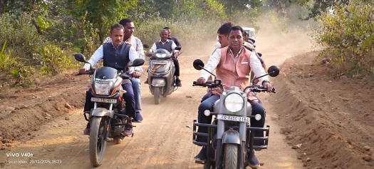 मोटर साइकिल से दुर्गम ग्रामो तक पहुंचे विधायक ध्रुव ने चैपाल लगाकर सुनी ग्रामीणों की समस्याएं कई निर्माण कार्यो का किया घोषणा