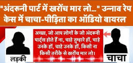 उन्नाव रेप केस में एक नया ऑडियो सामने आया है. इसमें कथित तौर पर पीड़िता और उसके चाचा के बीच की बातचीत है, जिसमें चाचा को ये कहते हुए सुना जा सकता है- जो आप लोगों के जो अंदरूनी पार्ट्स होते हैं ना, चाहे तुम्हारे हों, चाहे उनके हों, किसी ना किसी तरीके से खरोंच मार लो. TV9 भारतवर्ष इस ऑडियो की सत्यता की पुष्टि नहीं करता है.