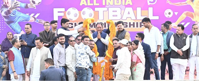 रायपुर – मुख्यमंत्री विष्णु देव साय ने रायपुर जिले के खरोरा में आयोजित सीएम ट्रॉफी ऑल इंडिया फुटबॉल चैंपियनशिप के भव्य समापन समारोह के अवसर पर क्षेत्रवासियों के लिए कई महत्वपूर्ण घोषणाएं की। मुख्यमंत्री श्री साय ने समोदा बैराज के निर्माण कार्य में तेजी लाने, खरोरा में बायपास रोड तथा गौरव पथ के निर्माण की घोषणा की।