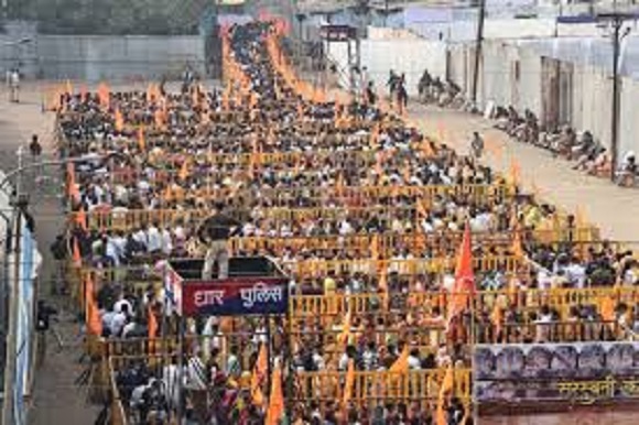 - शोभा यात्रा भोजशाल पहुंची। बड़ी संख्या में महिलाएं पुरुष भगवा पताकाओं के साथ आए। युवक नारे लगा रहे थे। खाली कर दो रास्ते, भोजशाला के वास्ते। शोभायात्रा में डीजे गाड़ियां भी थीं।