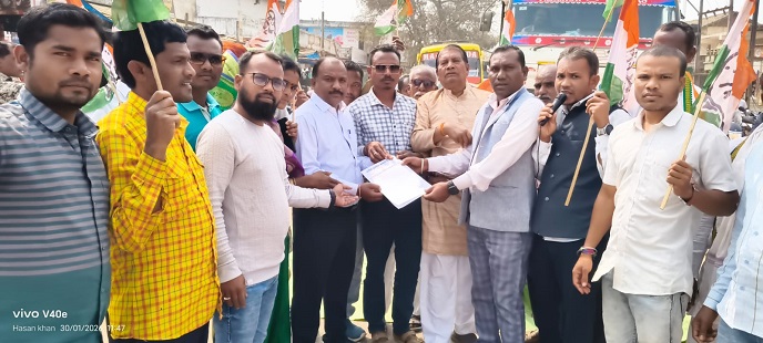 गरियाबंद – धान खरीदी की तिथि बढाने की मांग को लेकर आज शुक्रवार को ब्लॉक कांग्रेस कमेटी मैनपुर द्वारा नेशनल हाईवे 130 सी मुख्य मार्ग मैनपुर देवभोग गरियाबंद मे चक्काजाम कर दिया और भाजपा सरकार के खिलाफ नारेबाजी किया गया इस दौरान सड़क के दोनो तरफ लंबी वाहनो की कतार लग गई और सड़क मे बैठकर चक्काजाम कर रहे कांग्रेस नेताओं, पदाधिकारी व कार्यकर्ताओं ने मुख्यमंत्री के नाम तहसीलदार को ज्ञापन सौंपने के बाद चक्काजाम को स्थगित किया गया। प्रदेश कांग्रेस कमेटी के निर्देश पर आज 30 जनवरी को राष्ट्रपिता महात्मा गांधी के बलिदान दिवस के अवसर पर कांग्रेसियों ने सर्वप्रथम गांधी चौक पहुंचकर गांधी जी की प्रतिमा का पूजा अर्चना कर श्रध्दांजलि अर्पित किया और मनरेगा बचाओं संग्राम के तहत पूर्व निर्धारित कार्यक्रम अनुसार ग्राम पंचायत मैनपुर के सामने नेशनल हाईवे के उपर शांतिपूर्ण बैठकर चक्काजाम प्रारंभ कर दिये चक्काजाम प्रारंभ करते ही सड़क के दोनो ओर यात्री बस, मालवाहक गाड़ियों का काफिला लग गया भारी संख्या मे पुलिस बल थाना प्रभारी शिव शंकर हुर्रा के नेतृत्व मे पहुंचकर कांग्रेस कार्यकर्ताओं को चक्काजाम समाप्त करने समझाईस देते रहे इस दौरान कांग्रेसियों ने लगभग एक घंटा चक्काजाम नेशनल हाईवे को बाधित कर तहसीलदार के आने के बाद तहसीलदार रमेश मेहता को मुख्यमंत्री के नाम ज्ञापन सौंपकर चक्काजाम को समाप्त किया गया।