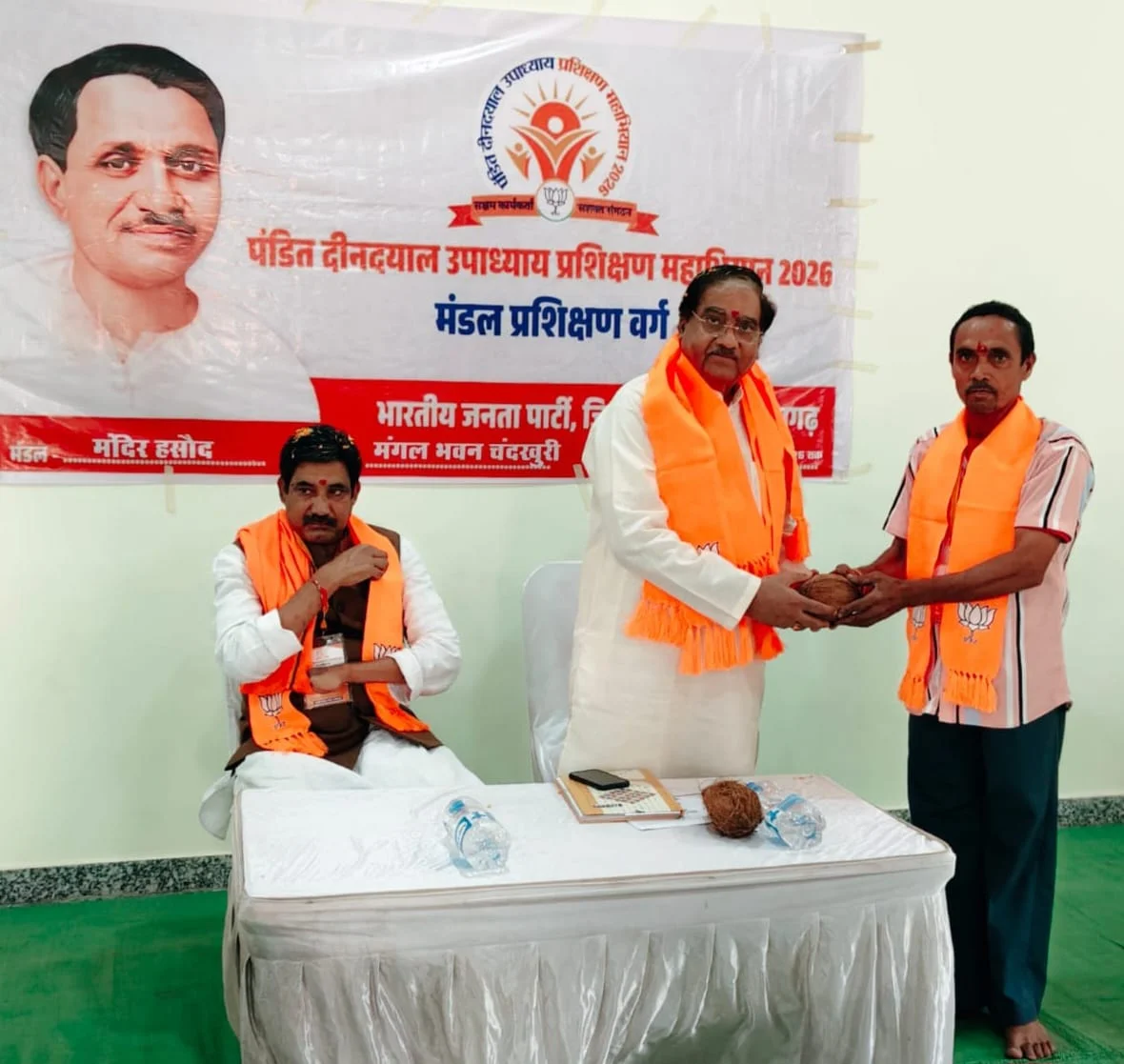 पंडित दीनदयाल उपाध्याय प्रशिक्षण महाअभियान 2026 के अंतर्गत मंदिर हसौद मंडल का दो दिवसीय कार्यकर्ता प्रशिक्षण वर्ग कौशल्या माता मंदिर के समीप कायस्थ भवन चंदखुरी में आयोजित किया गया। कार्यक्रम में कार्यकर्ताओं को विभिन्न वक्ताओं ने संगठन की विचारधारा और कार्य पद्धति से अवगत कराया । प्रशिक्षण कार्यक्रम में वक्ता के रूप में मुख्य रूप से अशोक बजाज के अलावा संतोष शुक्ला, संचित तिवारी, अरविंद ठाकुर एवं राजेश साहू शामिल हुए जिन्होंने संगठन की रीति – नीति, कार्य प्रणाली और कार्यकर्ताओं की भूमिका पर विस्तार से प्रकाश डाला।
